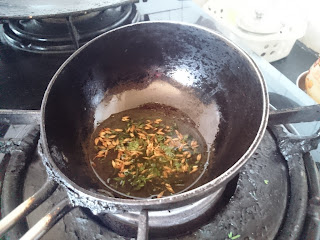 Prepare the tempering by adding cumin seeds and chopped coriander leaves in a hot oil.